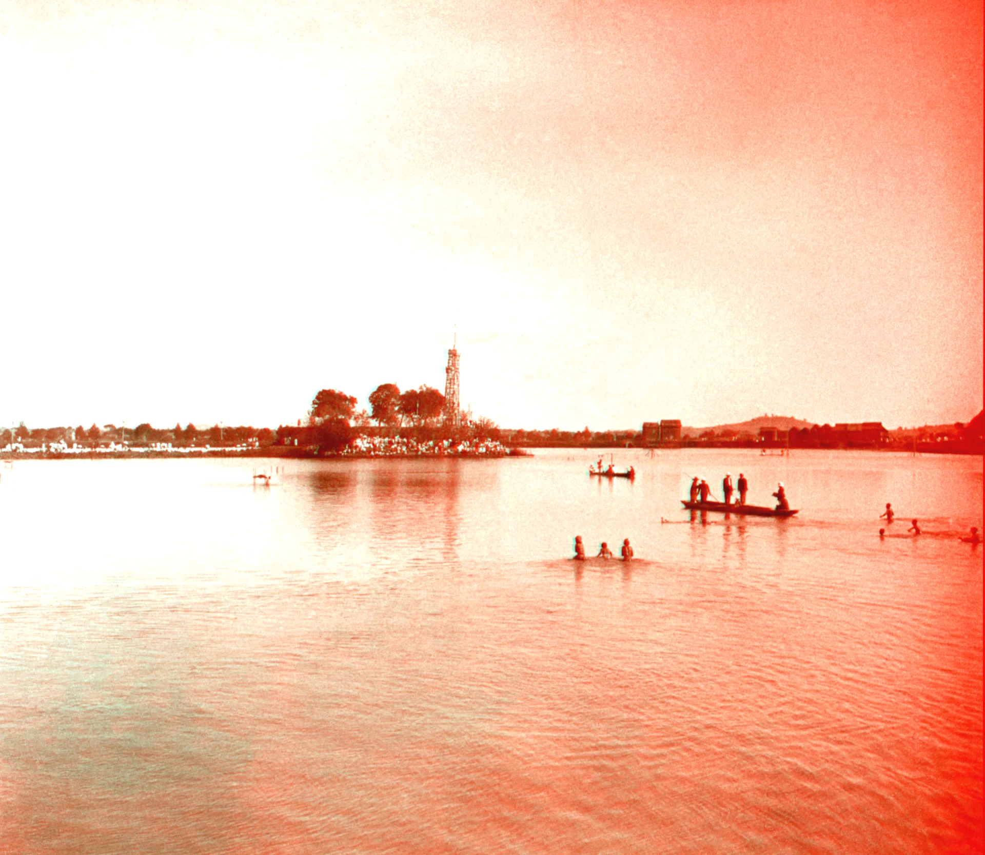 Zdjęcie najprawdopodobniej wykonano nad jeziorem Paprocańskim w pobliżu Tychów. Widać łodzie na jeziorze i kapiących się. Zdjęcie zrobiono prawdopodobnie tego samego dnia, co inne slajdy wykonane w okolicy jeziora. Pewnie w czasie sierpniowej wycieczki w okolice Tychów.