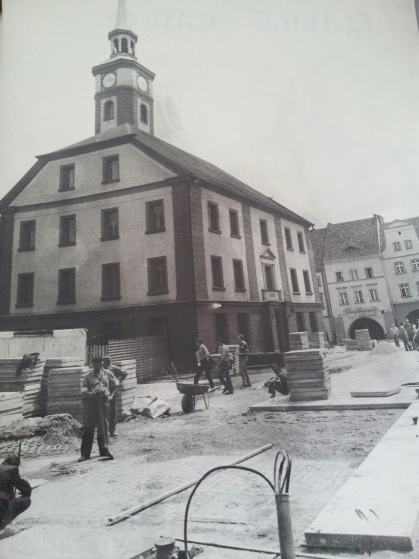 Obecny wygląd ratusza i zachodniej strony Rynku jest nieco inny niż na prezentowanym slajdzie. Na początku lat 80. XX wieku od strony północnej do ratusza dobudowano podcienia, nad którymi powstał pokaźny taras. Kamienice zaś mają uproszczone elewacje. W 2024 roku ratusz przeszedł kompleksowy remont.