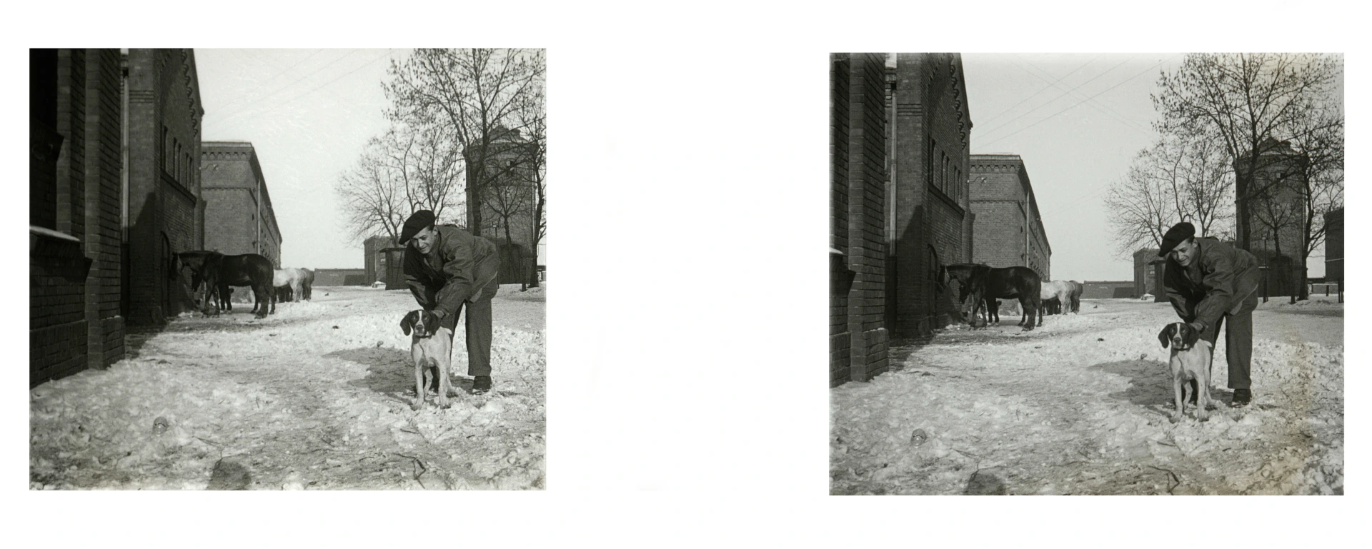 Gliwice, prawdopodobnie zima 1920/1921. Zdjęcie zrobiono na terenie koszar położonych między dzisiejszymi ulicami Sobieskiego (wówczas Freundstrasse), Kościuszki (Friedrichstrasse) i Daszyńskiego (Kieferstädtler Landstrassee).
